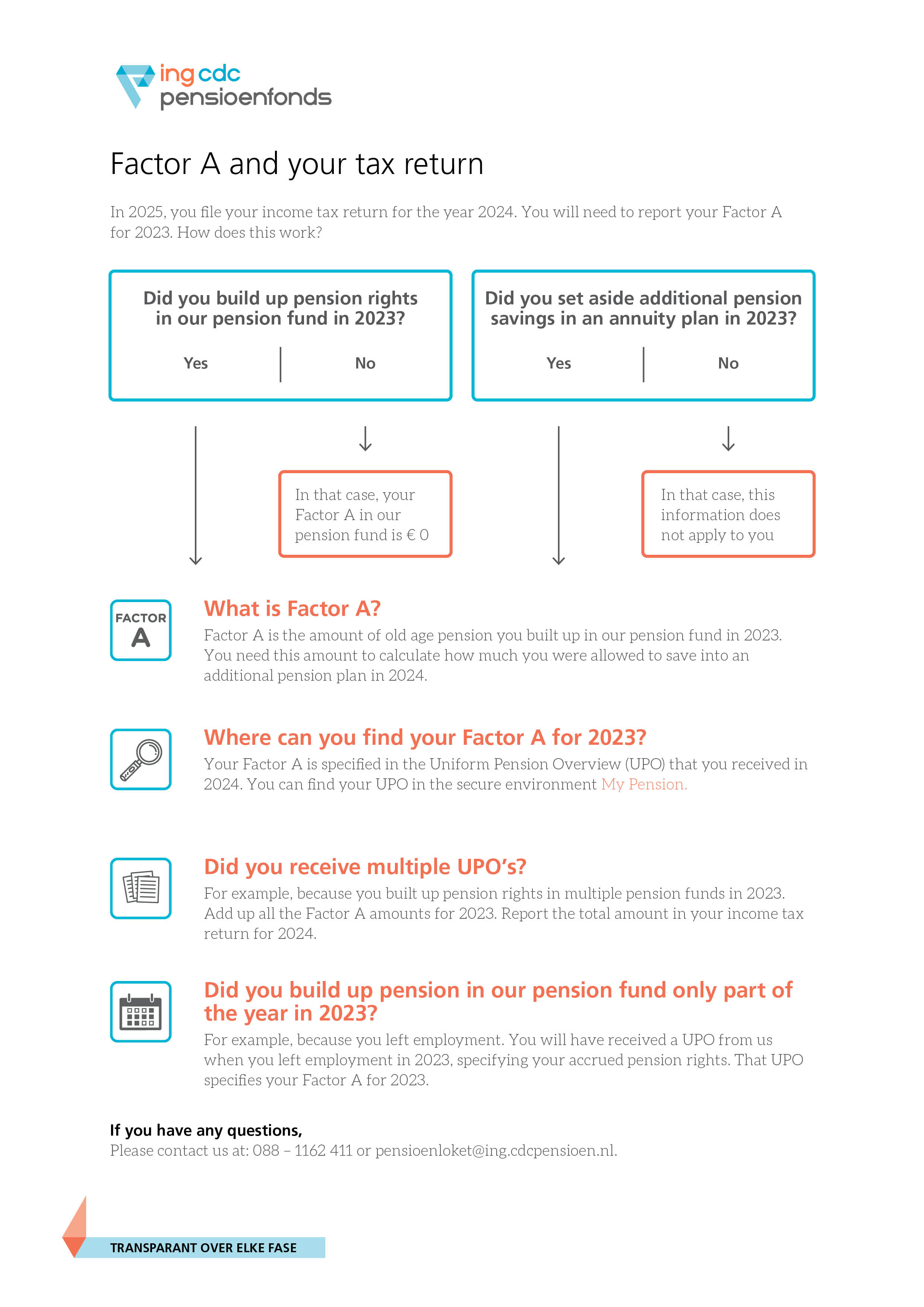 Throughout your career at ING, your situation changes frequently, both at work and in your private life. Some of these events may affect your pension. ING CDC Pensioenfonds will help you make well-informed pension choices, taking into account whichever phase of life you’re in. How? By being transparent about each phase.